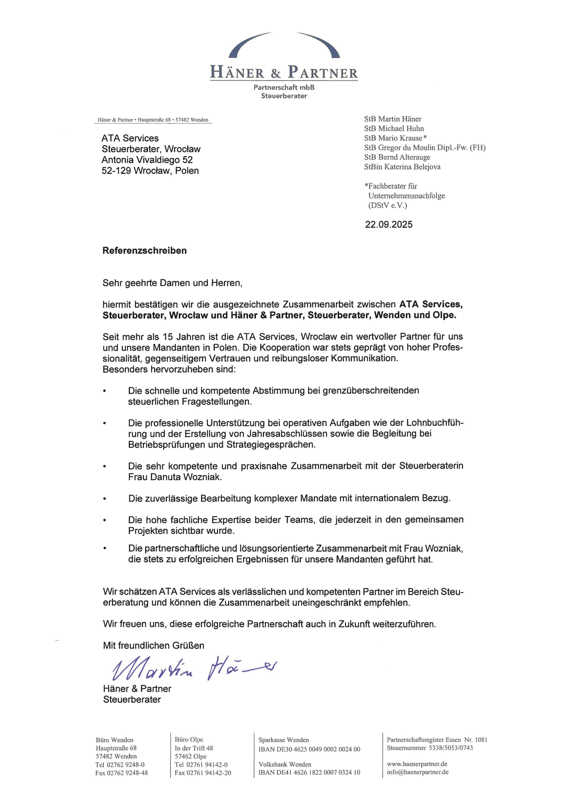Wyróżnienie Danuta Woźniak ATA Services